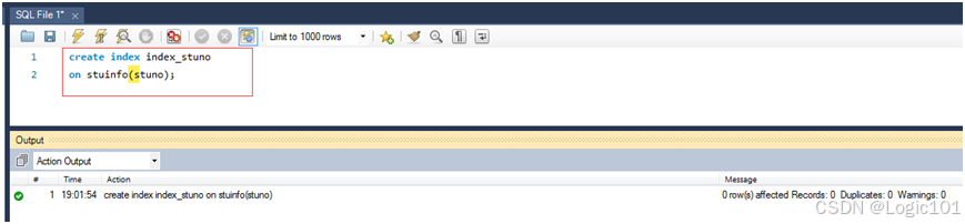 【实验2-14】创建stuinfo表上stuno的索引。