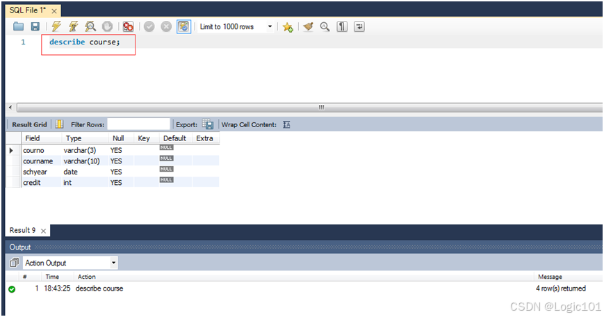 describe course;