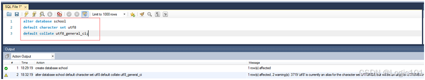 【实验2-8】将school数据库的字符集设为utf-8。