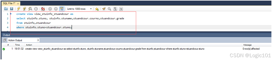 create view view_stuinfo_stuandcour as select stuinfo.stuno,stuinfo.stuname,stuandcour.courno,stuand.grade from stuinfo,stuandcour where stuinfo.stuno=stuandcour.stuno;