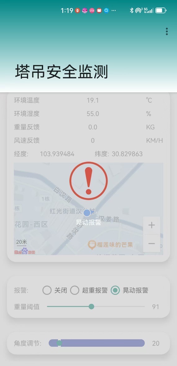 8.加速度传感器:用于监测塔吊是否出现剧烈晃动以及反馈倾斜度;