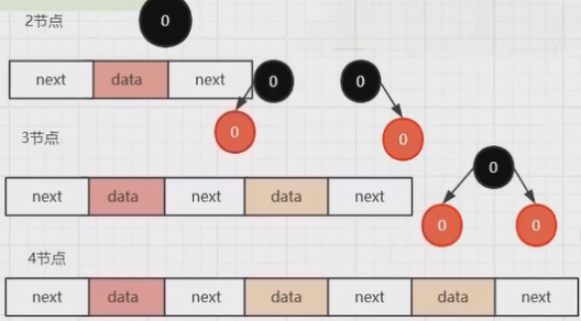 然后找到各节点对应的红黑树样式,2节点对应一个黑节点,3节点对应父节点是黑节点,下面接一个红结点,4节点对应父节点是黑节点,下面左右节点都是红结点。