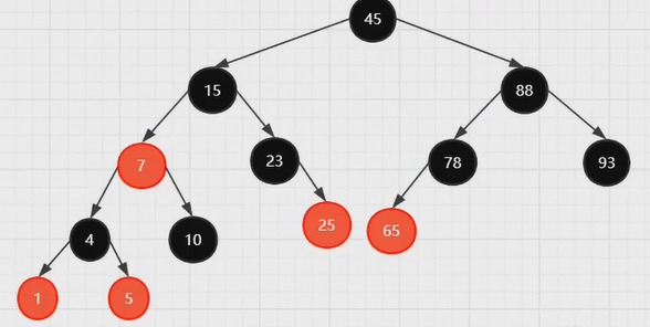 (每个最下方的节点下面都有一个黑色的叶子结点,图中没有画出来)