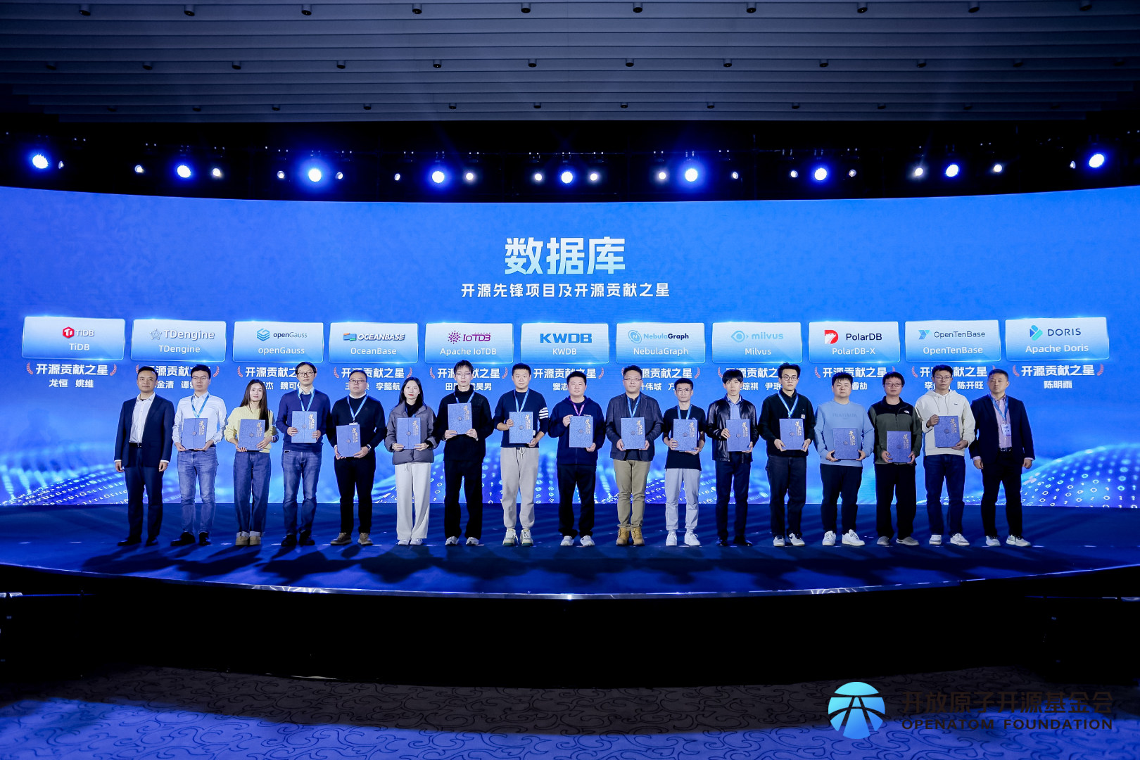 在大会核心环节的中国开源创新力量致谢仪式上,基金会通过系统化数据采集、模型测算与专家评审的严苛机制,从技术创新、社区治理、应用生态、国际影响力等多个维度,对操作系统、数据库、人工智能三大关键技术领域的贡献者进行了权威识别与致谢。