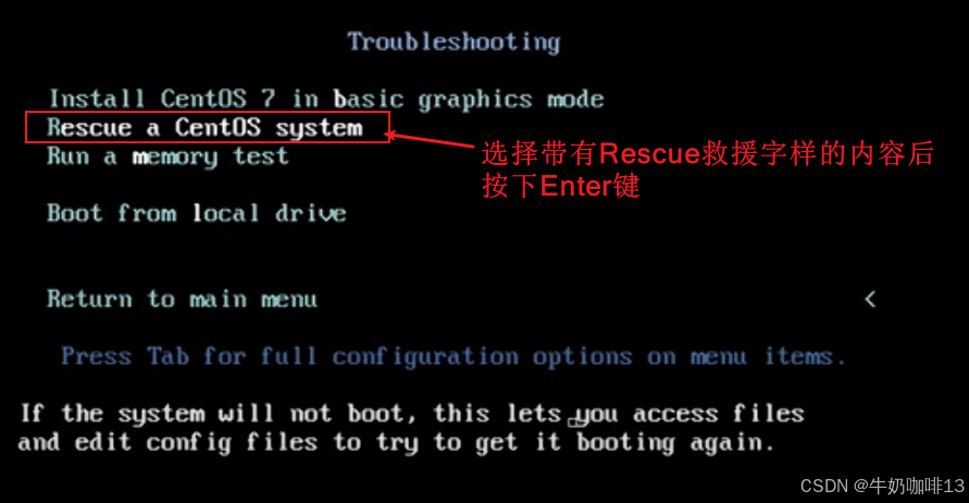 #3-选择带有【Rescue(救援)】字样的内容后按下Enter键等待进入救援模式