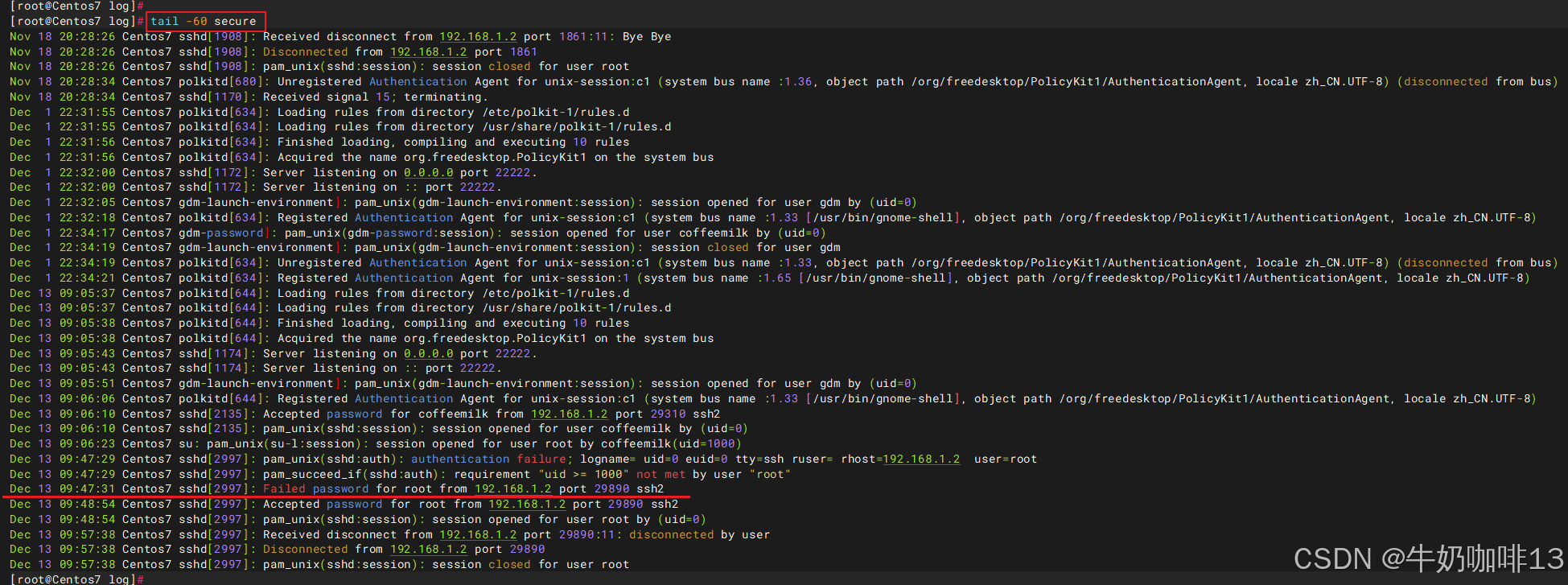 | 6 | /var/log/secure | 记录用户远程登录、认证过程中的事件信息(如:SSH的登录与认证事件,登录的IP、次数、成功与否等数据;可通过查看该文件来分析我们的系统是否被攻击,有一部分攻击时采用暴力破解方式来尝试的)。 |