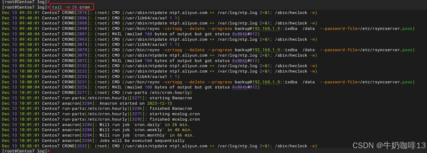 | 2 | /var/log/cron | 记录crond计划任务产生的事件消息。 |