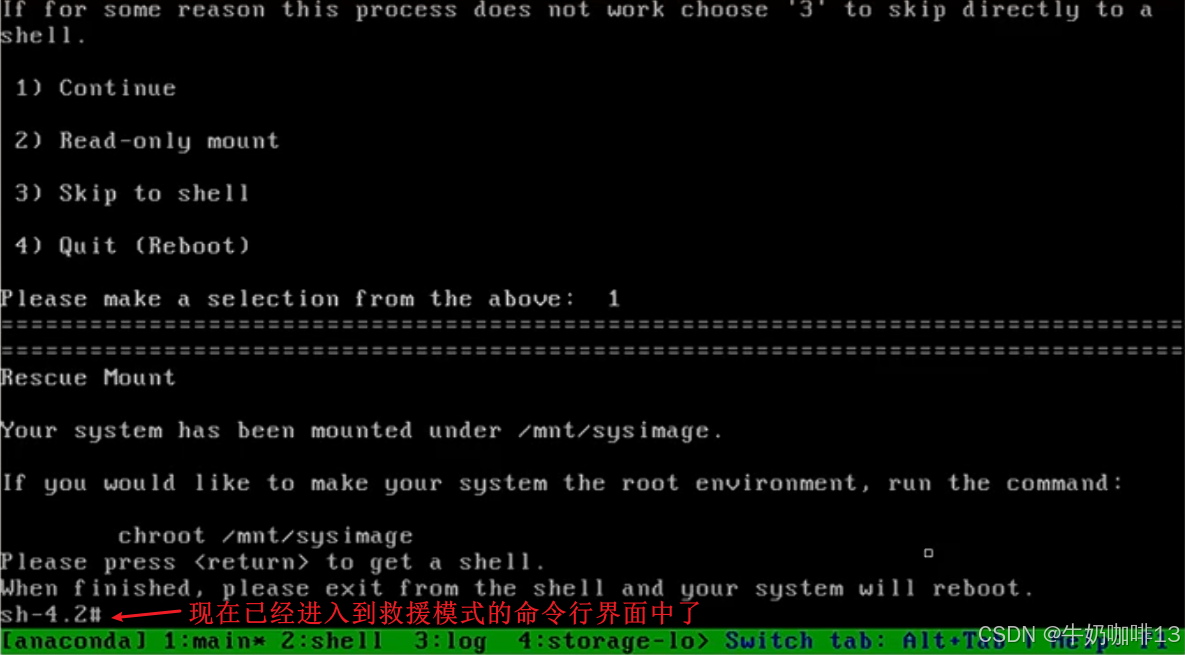 #4.1-针对【/etc/fstab】文件修改错误,则需要进入救援模式挂载的根分区中编辑(如:vi /mnt/sysimage/etc/fstab)【防范这类错误的最好办法就是定期备份系统,还有就是在编辑这些重要文件前先备份,在操作】