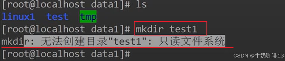 现象1:我们在创建文件或文件夹就提示"无法创建xxx:只读文件系统"。