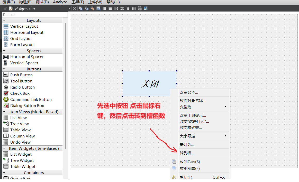 (1)在 "widget.h" 头⽂件中⾃动添加槽函数的声明;