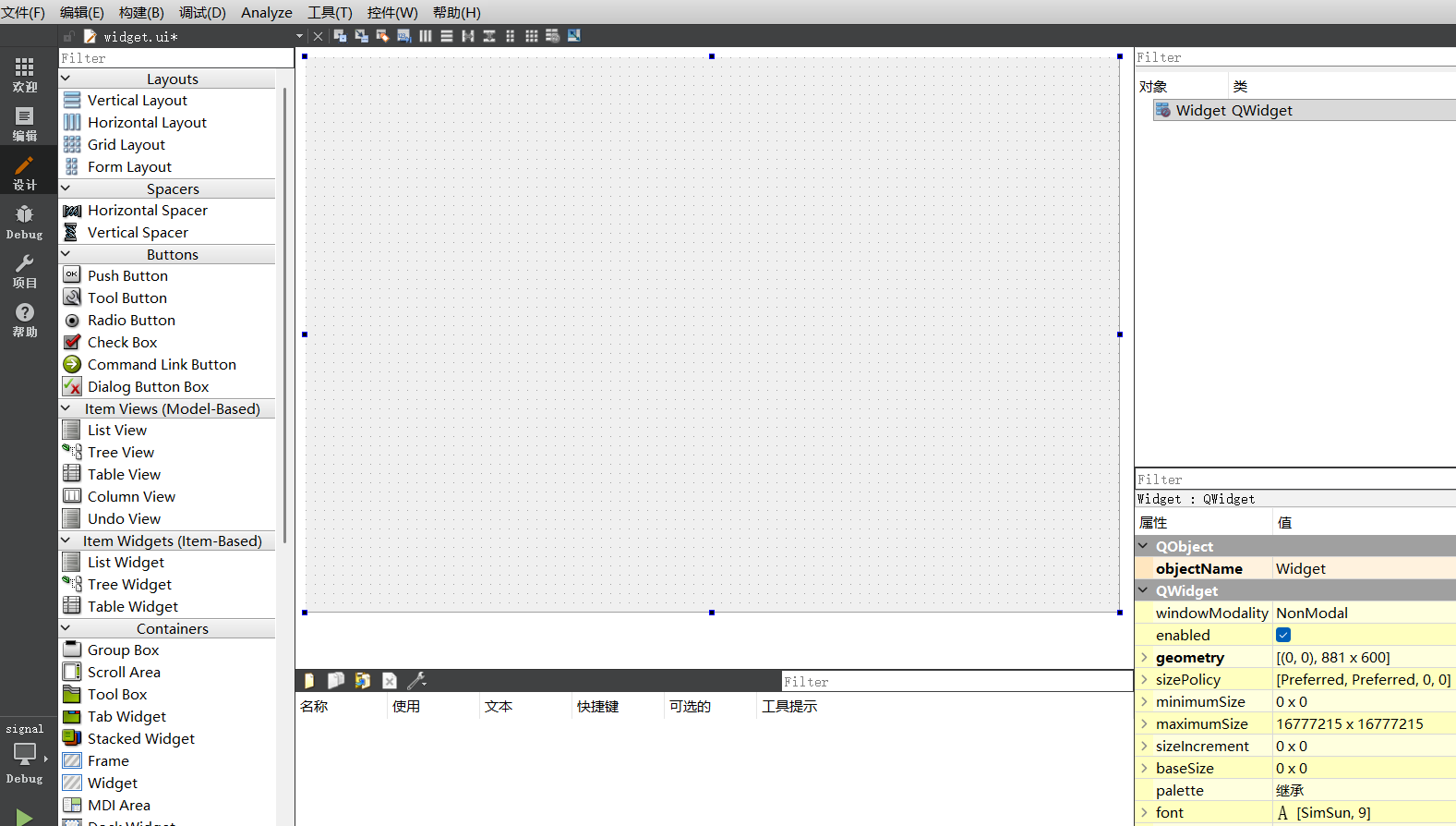 2.双击widget.ui⽂件,进⼊ UI 设计界⾯;