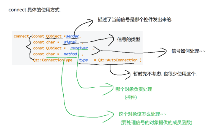 • type: ⽤于指定关联⽅式,默认的关联⽅式为 Qt::AutoConnection,通常不需要⼿动设定。