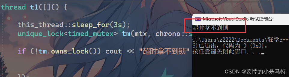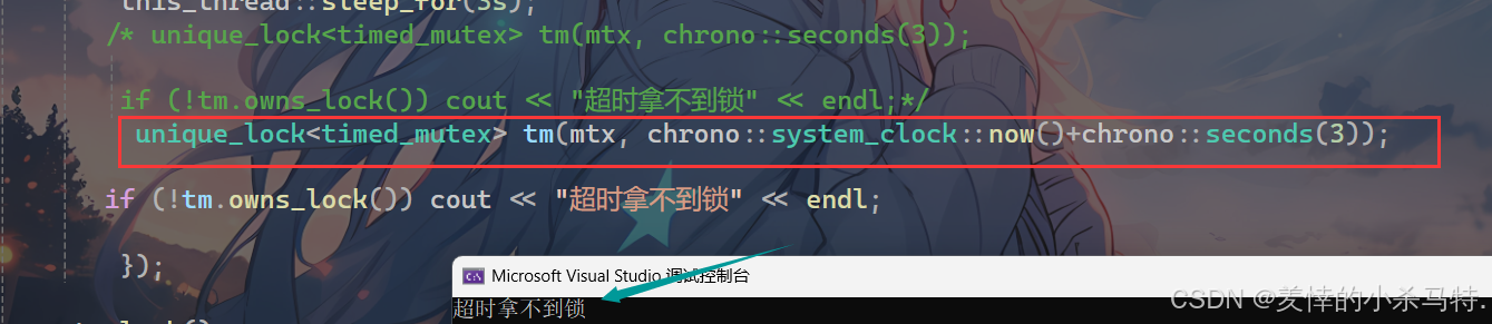 if (!tm.owns_lock()) cout << "超时拿不到锁" << endl;*/
