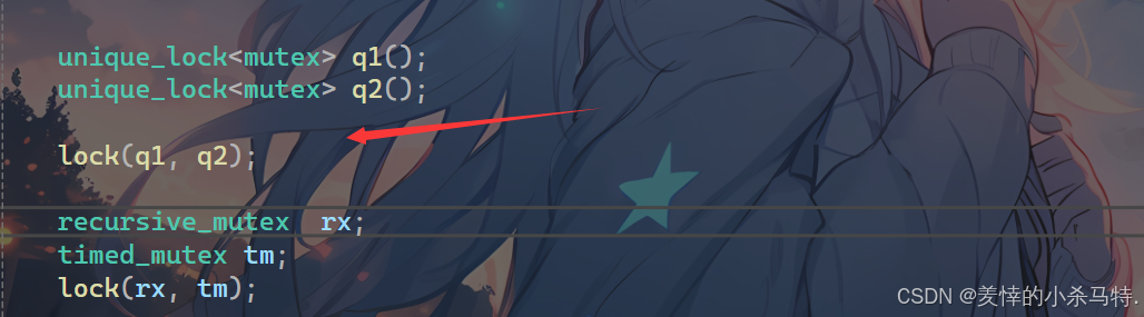 unique_lock还可以在构造时传入时间段 或时间点 ,用于配合timed_mutex系统来实现带超时机制的锁操作。构造时会分别调用try_lock_for(...)或try_lock_until(...)这类接口,从而支持"尝试在指定时长内加锁"或"尝试在指定时间点前加锁"等场景(这里拿到锁,对应unique_lock就有对应锁否则等待对应时间再次尝试,时间结束后可以调用owns_lock() 查看是否有锁,这里不会一直阻塞住,而是到时间填充对应的owns_lock()的值)(也可以传递recursive_mutex,来让它自动管理)。