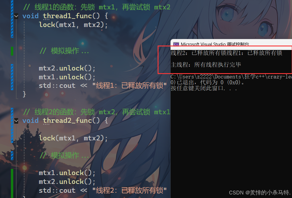 std::cout << "已解锁 mtx1 和 mtx2" << std::endl;