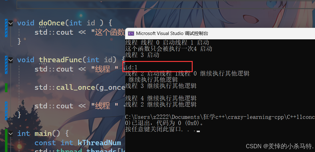 std::cout << "主线程:所有线程执行完毕" << std::endl;