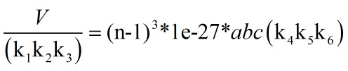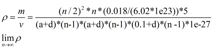 | f1=(n/2)*(n/2)*n*(0.018/(6.02*1e23))*5 |
