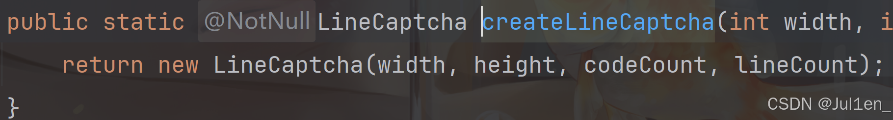 LineCaptcha captcha = CaptchaUtil.createLineCaptcha(properties.getWidth(),