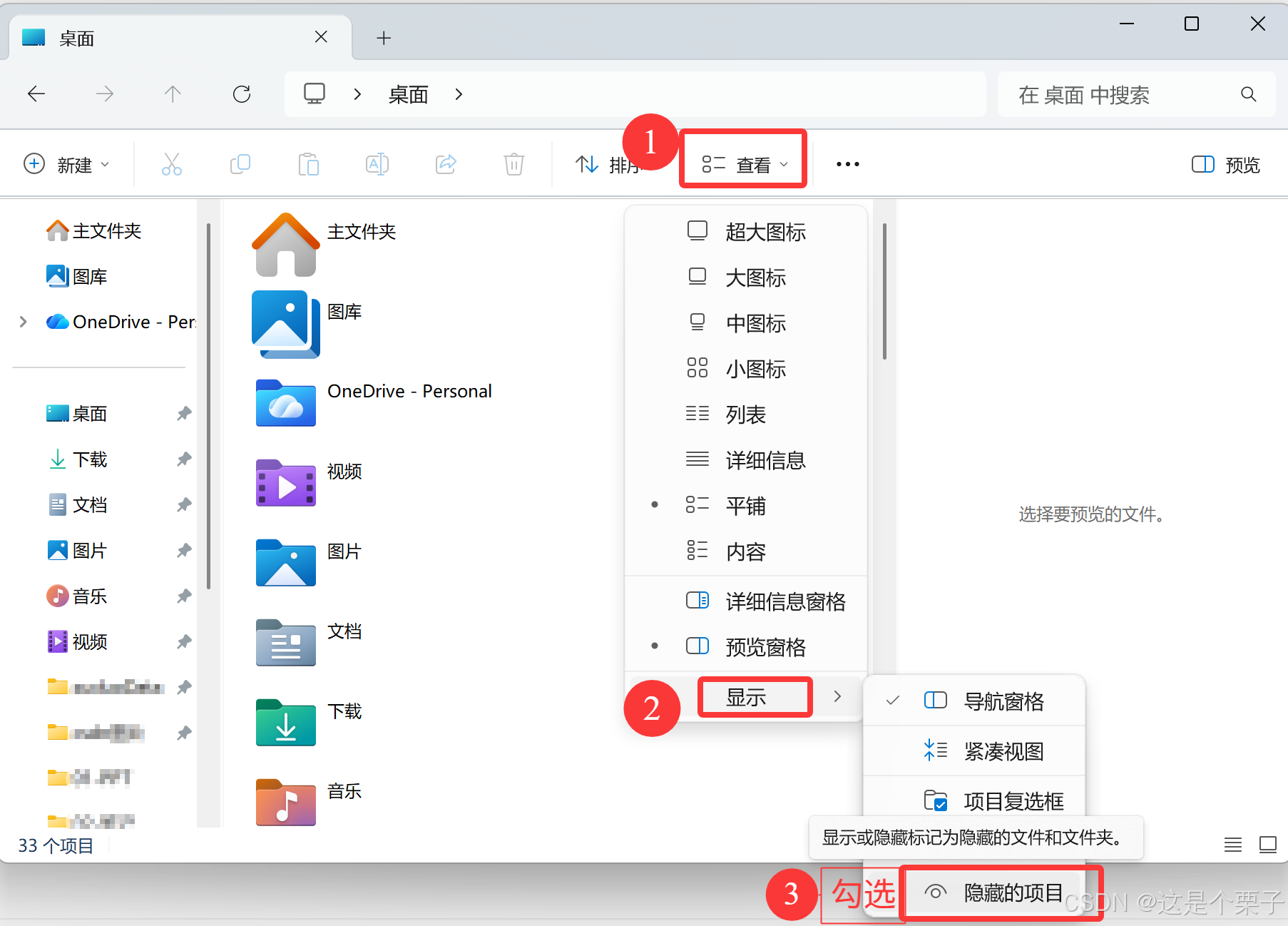 - 在文件夹选项中勾选"显示隐藏的文件、文件夹和驱动器"。