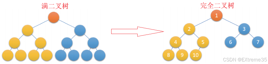 - 意义 :完全二叉树是效率极高的数据结构,它是数组存储二叉树的最佳形态。