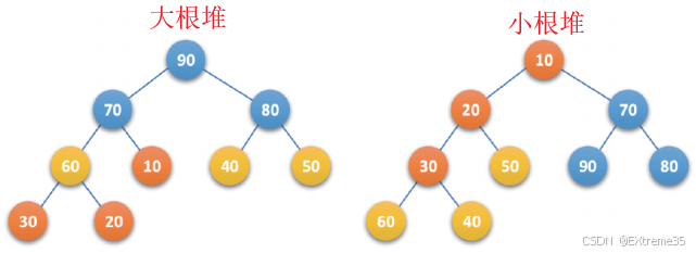 堆,本质上就是一棵满足特定排序规则的完全二叉树。根据排序规则的不同,分为两类: