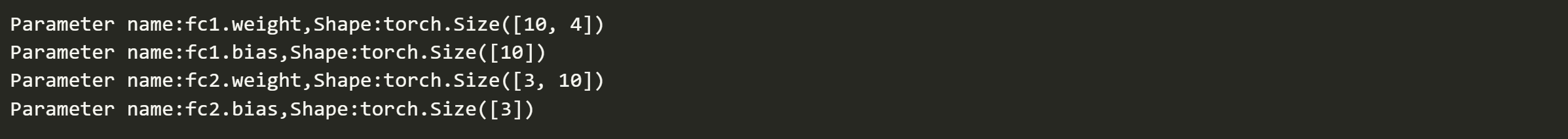 print(f"Parameter name:{name},Shape:{param.shape}")