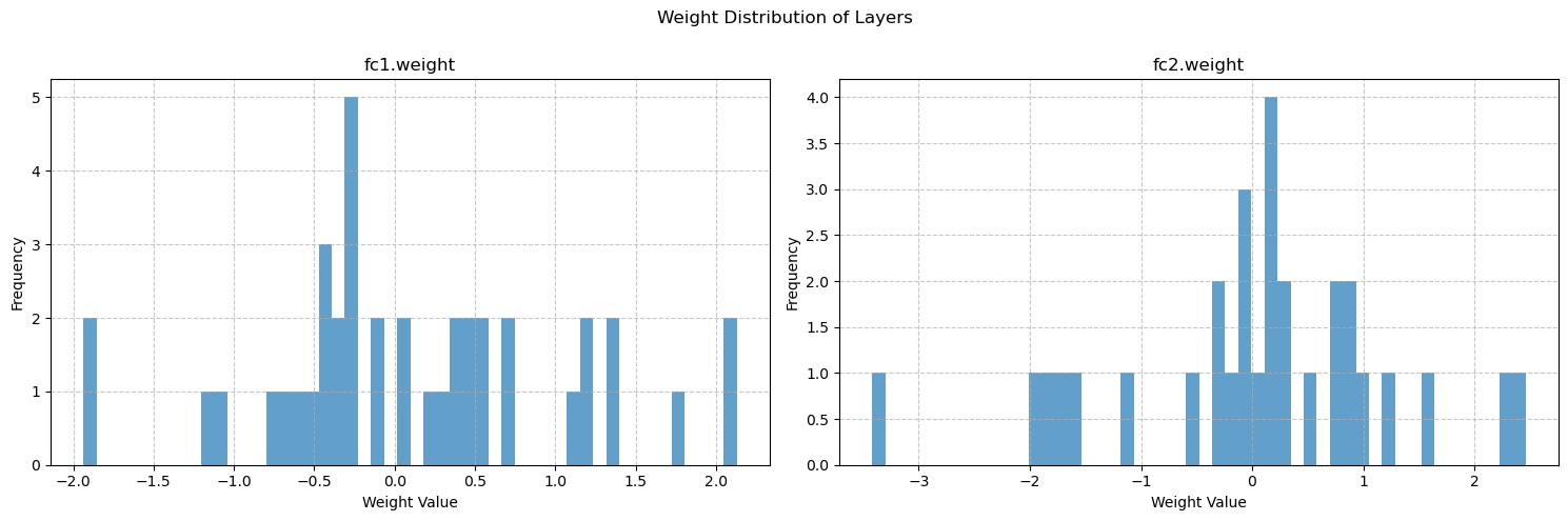 axes[i].hist(weights_flat,bins=50,alpha=0.7)
