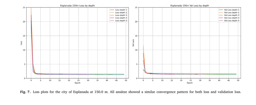 通过分析训练过程中的 Loss 曲线,发现所有不同深度的 QNN 模型都表现出相似的收敛模式。训练损失和验证损失同步下降并趋于稳定,且两者差距很小。这表明提出的量子模型具有很强的泛化能力,未出现欠拟合或过拟合现象。