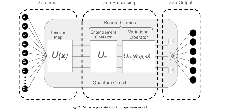 本文提出的量子神经网络模型遵循经典的变分量子算法结构,主要由数据输入、数据处理和数据输出三个阶段组成。