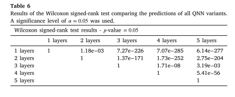 结果表明,增加电路深度并不一定能带来性能的提升,不同深度的模型预测结果存在统计学显著差异,但浅层模型,如1-2层,往往能提供足够好甚至更优的结果。这意味着在风速临近预报任务中,计算资源可以更明智地分配给其他优化方面,而非单纯增加深度。