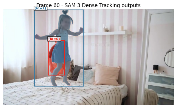 每隔60帧显示一次推理结果,我们可以发现,之前ID=1的小女孩已经没有被进行分割。
