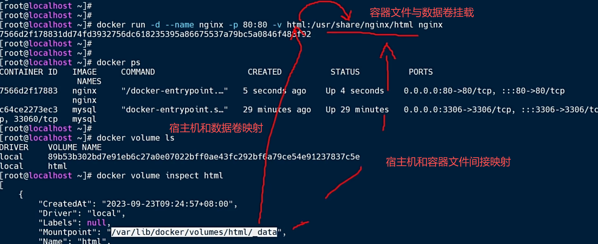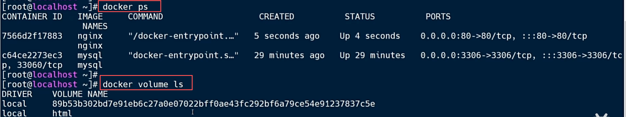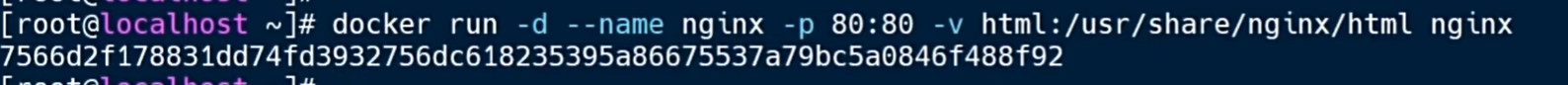 docker run -d --name nginx -p 80:80 -v html:/usr/share/nginx/html nginx