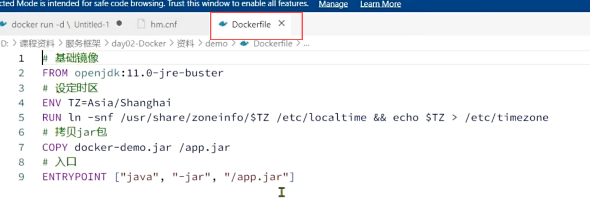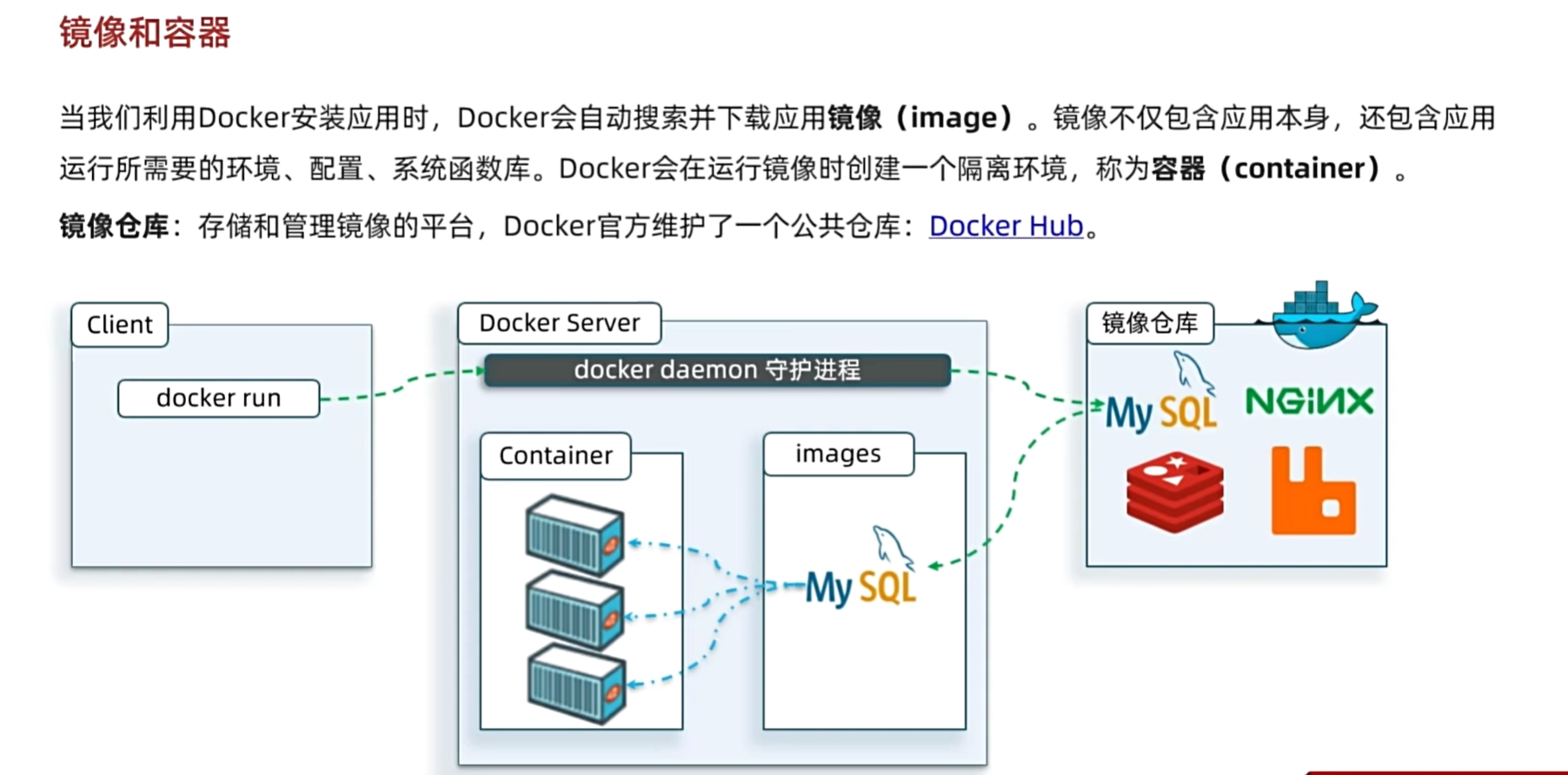 Docker 把应用代码 + 运行时依赖(库、配置、系统工具) 打成一个镜像(Image),