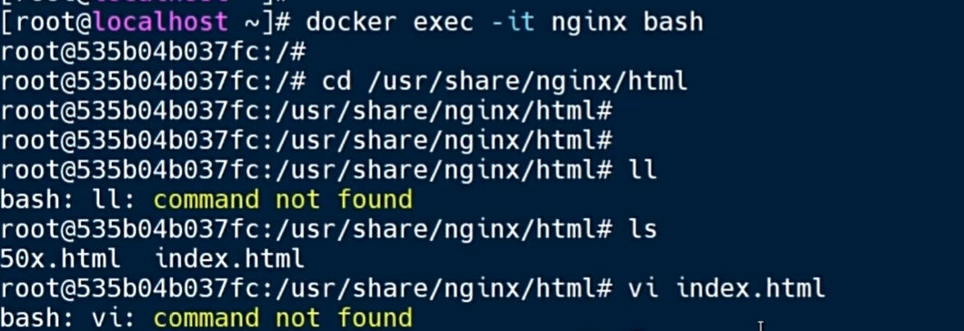发现ll指令和vi指令都找不到,无法在容器内修改指令