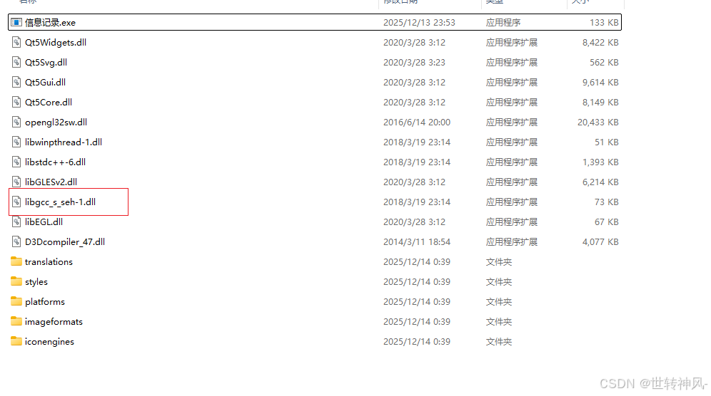 则生成对应的依赖:libgcc_s_seh-1.dll