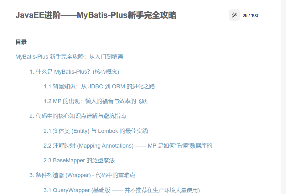 [MyBatis-Plus 新手完全攻略:从入门到精通](#MyBatis-Plus 新手完全攻略:从入门到精通)