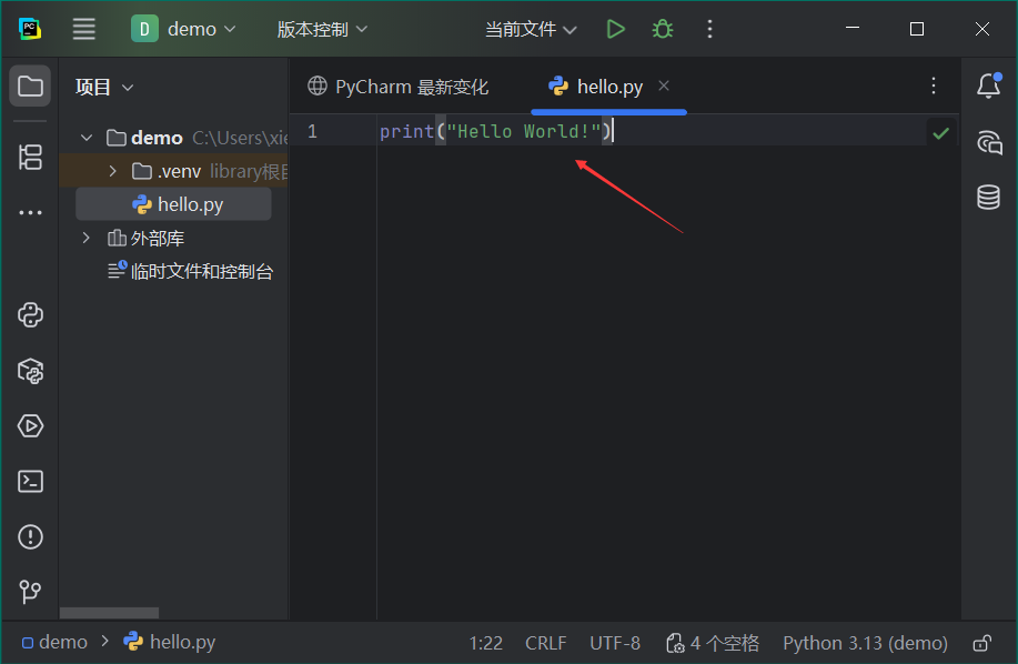 PyCharm 中,往往是通过项目来管理 Python 源代码文件的。虽然对于第一个 Python 程序来说,创建项目来管理似乎有些"大材小用",但对于初学者来说,学会创建 Python 项目是非常有必要的。