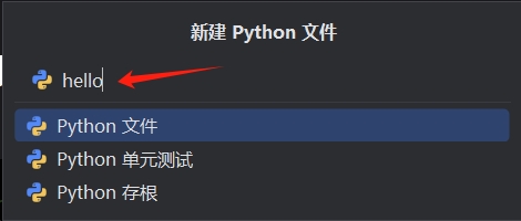 此时,就会打开新建 Python 文件的对话框,输入要新建 Python 文件的名字(如 hello),如下图所示: