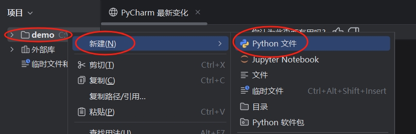 项目创建完成之后,就可以创建一个 Python 代码文件了,具体操作如下。