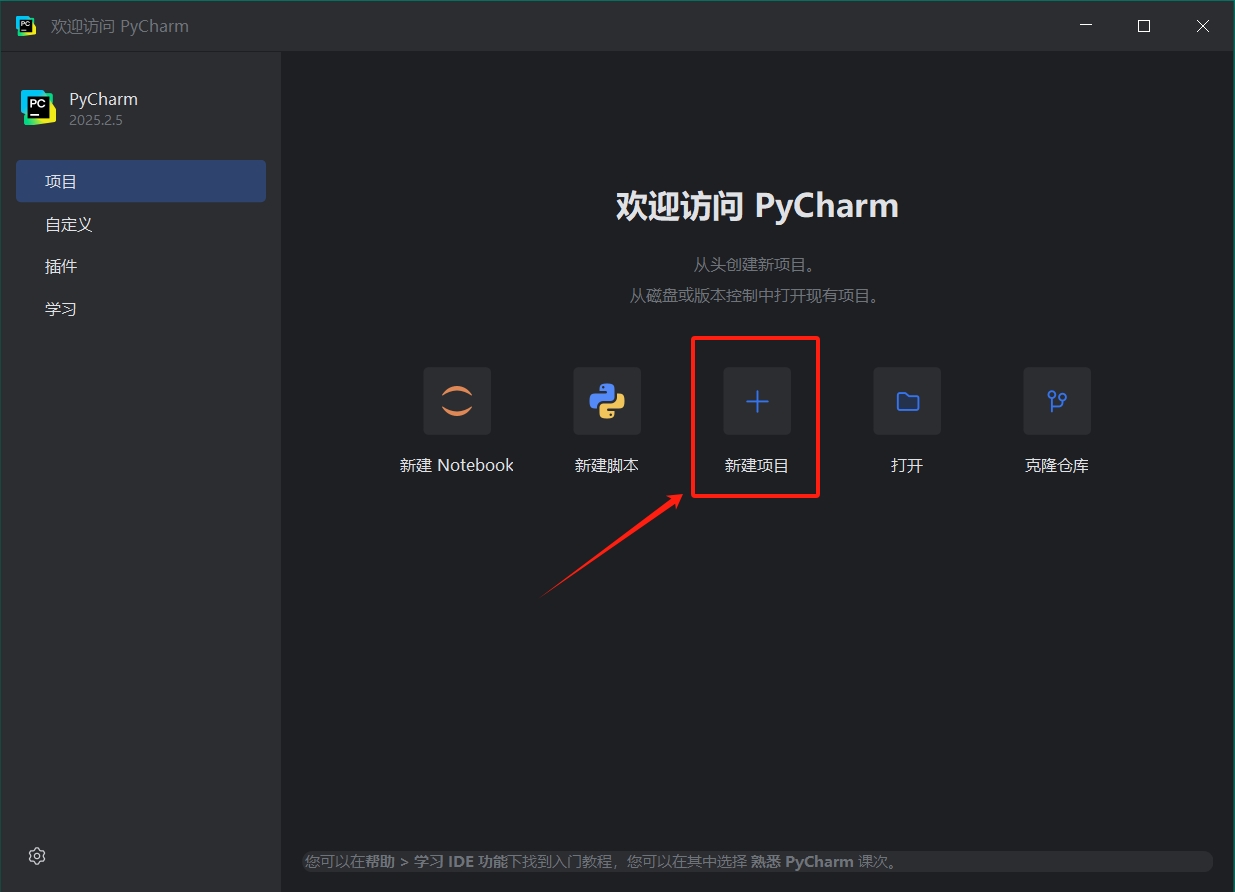 PyCharm 创建项目的步骤是这样的,首先打开 PyCharm,会显示出如下图所示的欢迎界面。