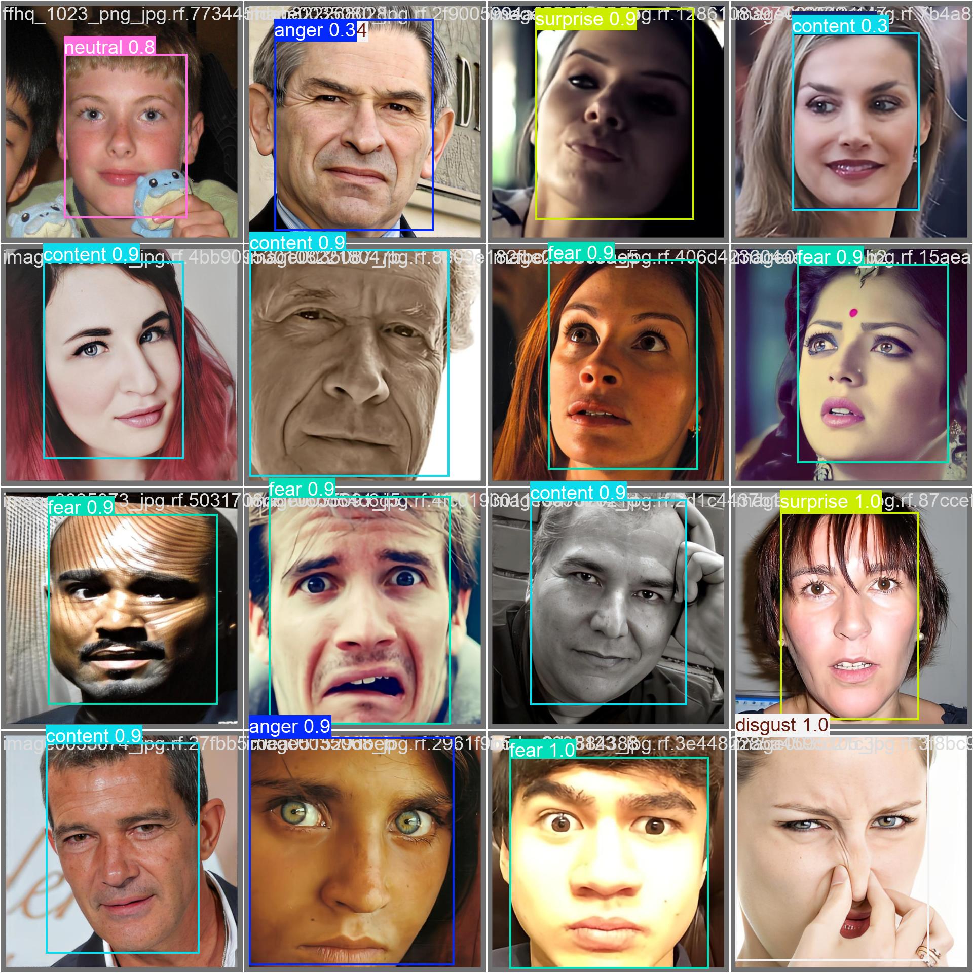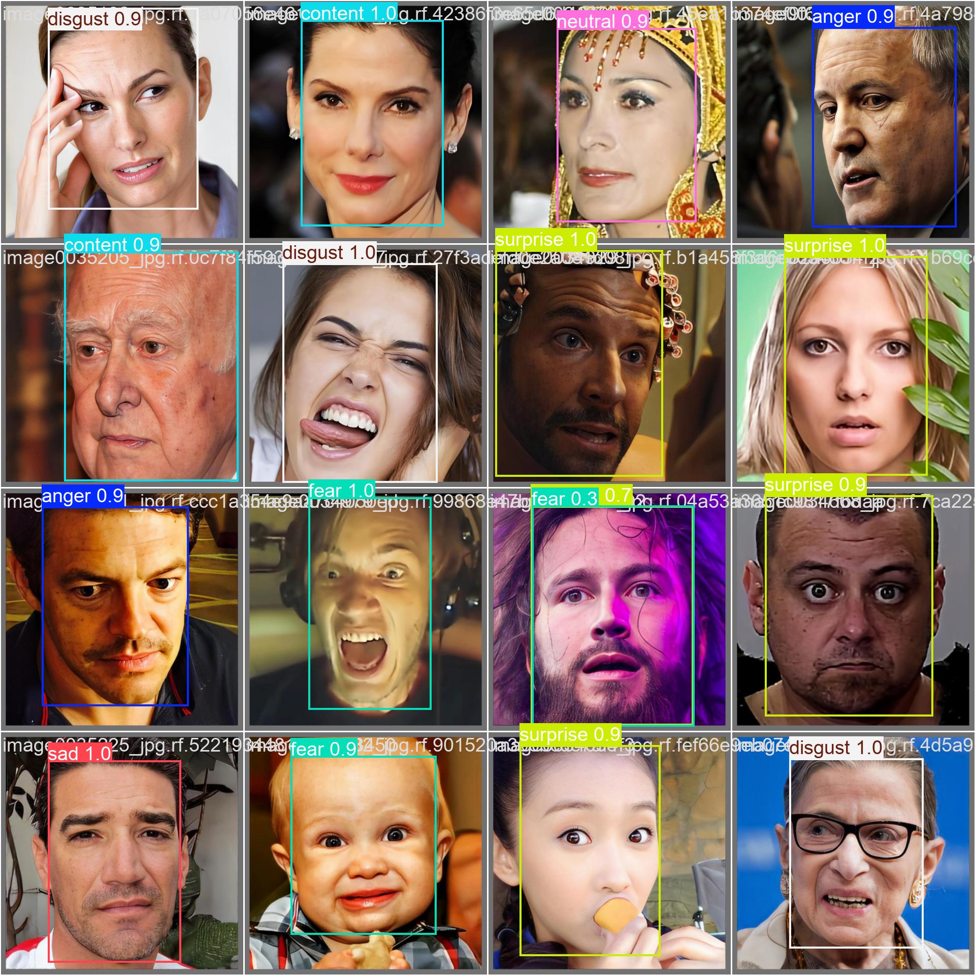 💡 注意:需将原始分类数据集转换为目标检测格式(每张图中每张人脸标注一个框+情绪标签)。