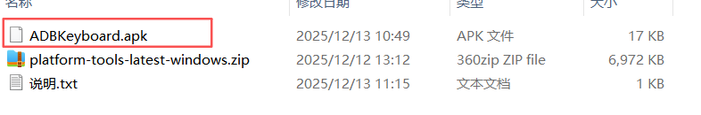 安装 : 下载 ADBKeyboard.apk 并在您的安卓设备上安装。(夸克网盘有提供)