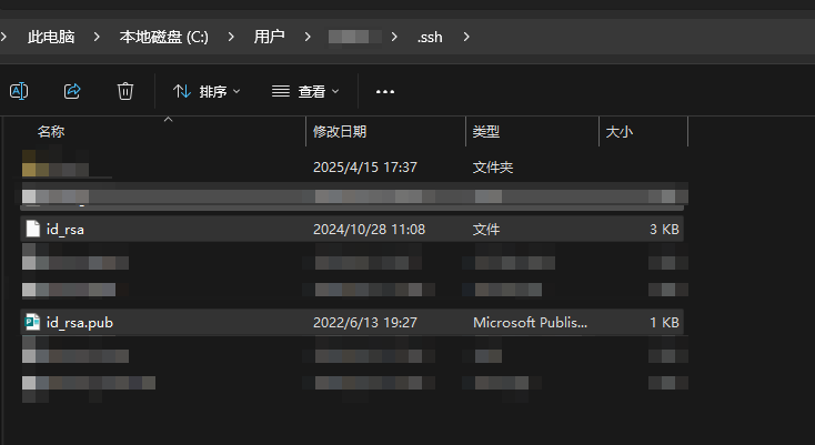 最终生成的密钥文件会存在用户目录下, windows 下如下所示两个文件: