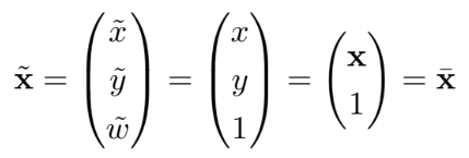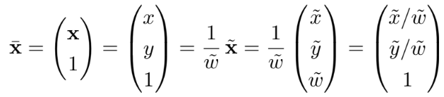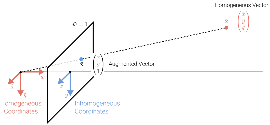 = 1) 就对应了非齐次坐标平面,而齐次坐标下从原点出发的那一条射线上的所有点 (除了原点) 都代表非齐次坐标的同一个点。