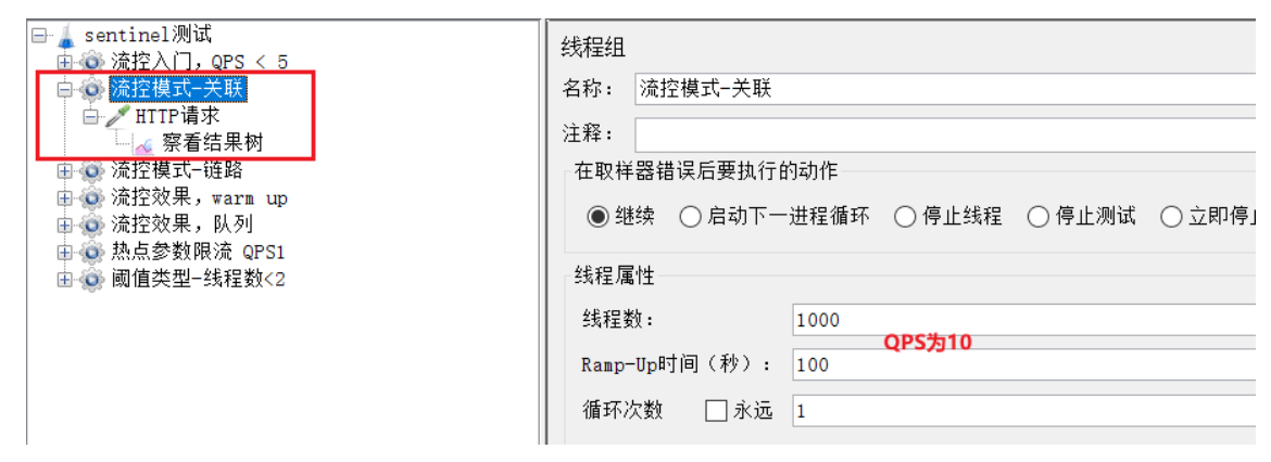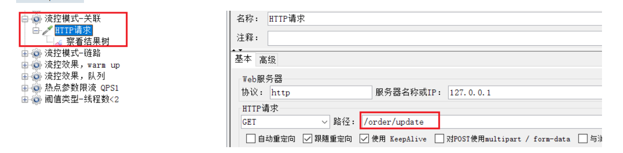 关联模式:统计与当前资源相关的另一个资源,触发阈值时,对当前资源限流