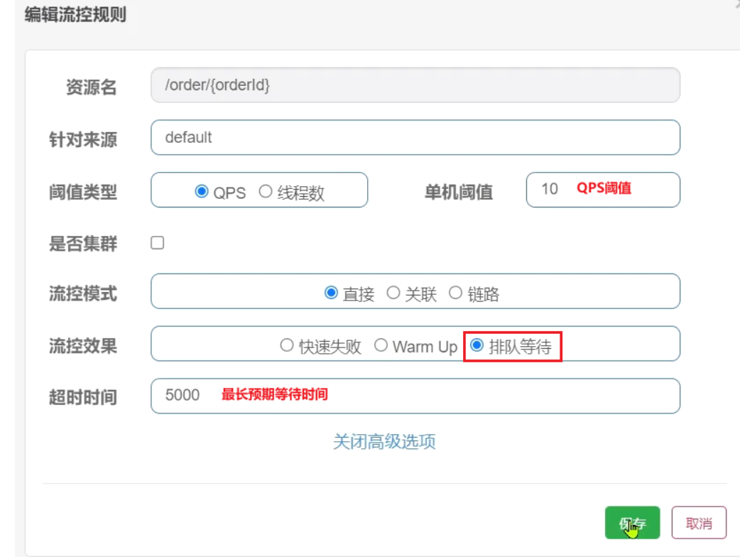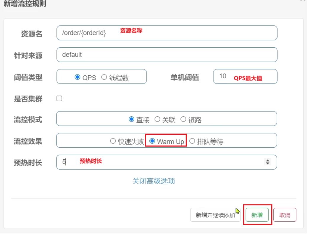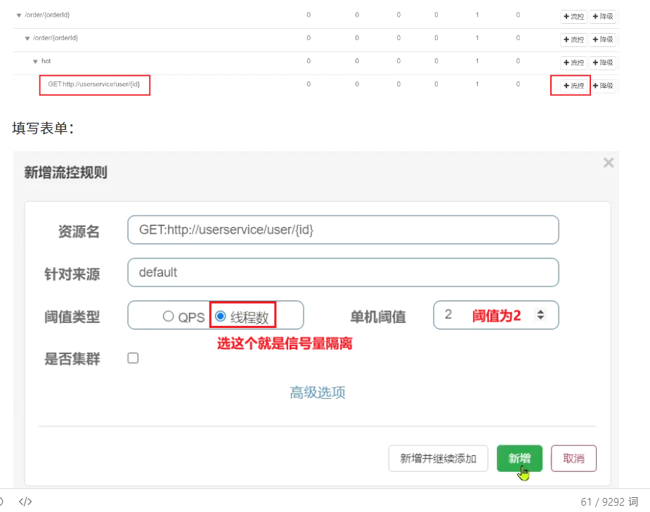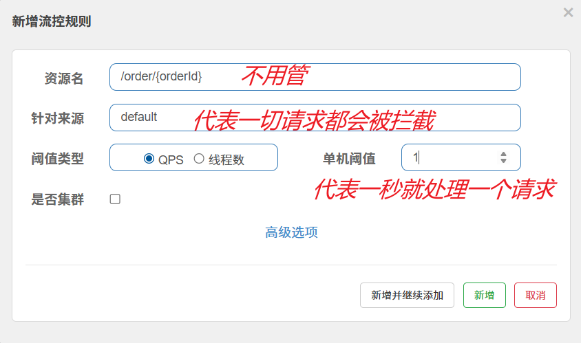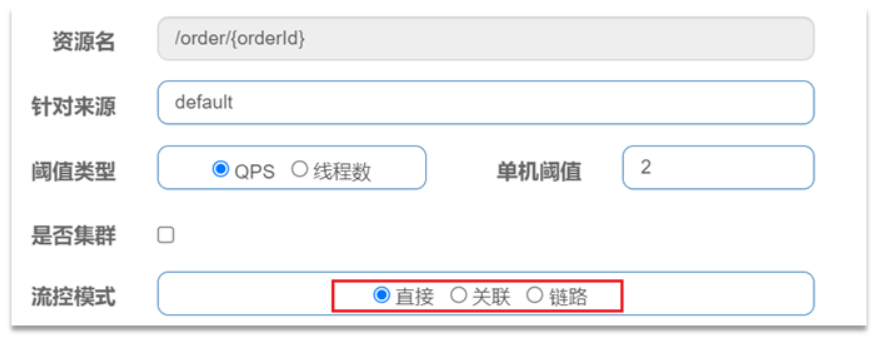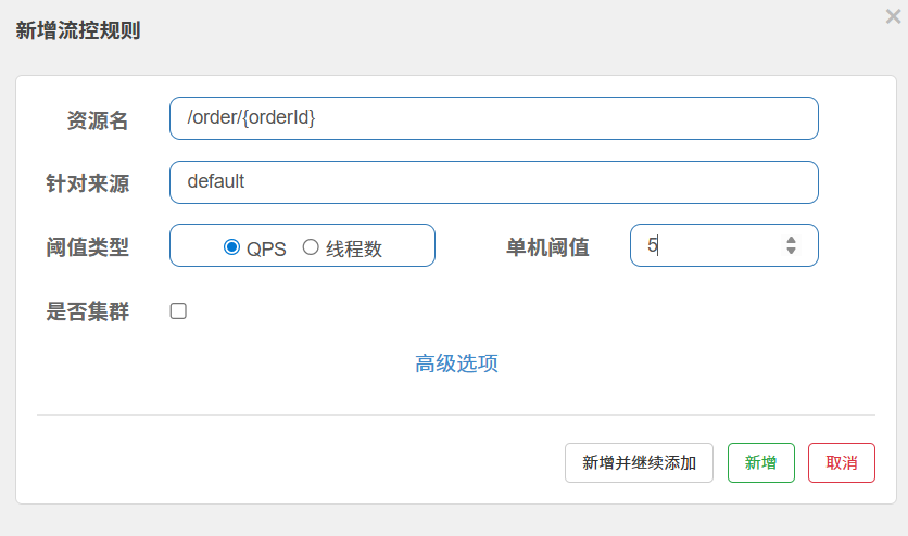 点击资源/order/{orderId}后面的流控按钮,就可以弹出表单。