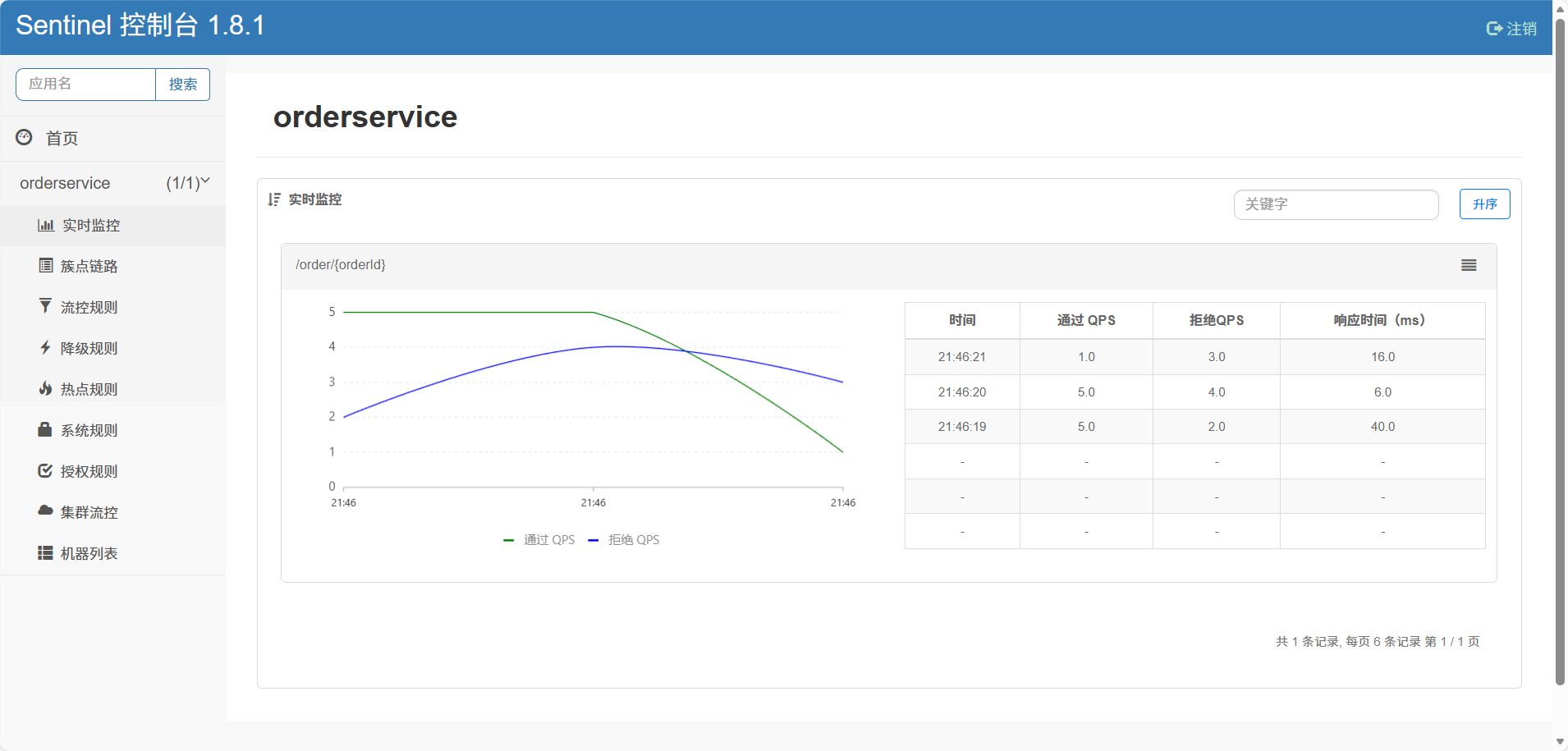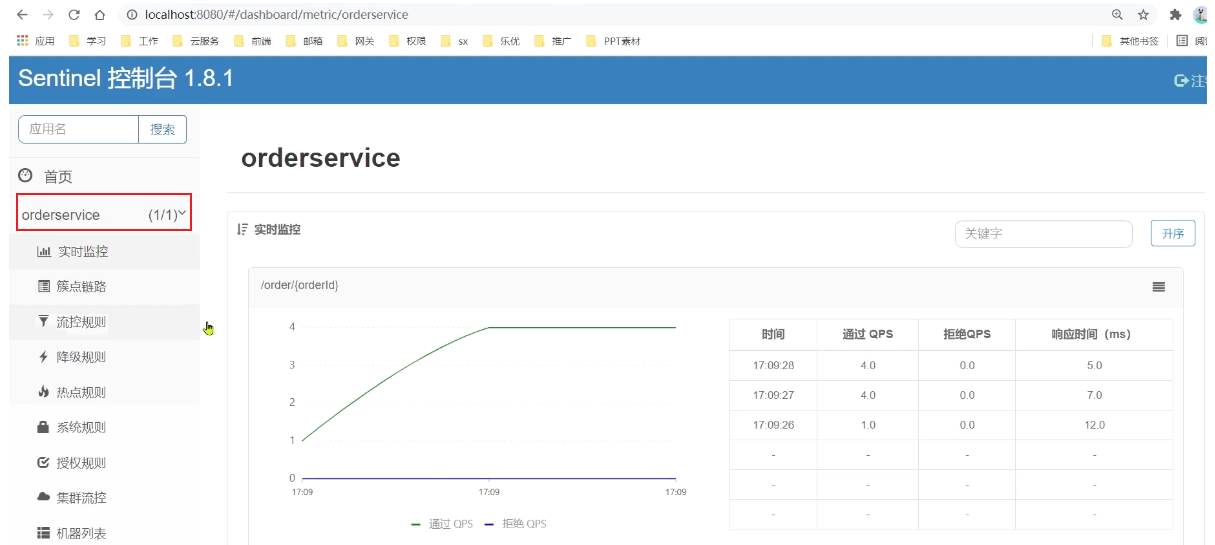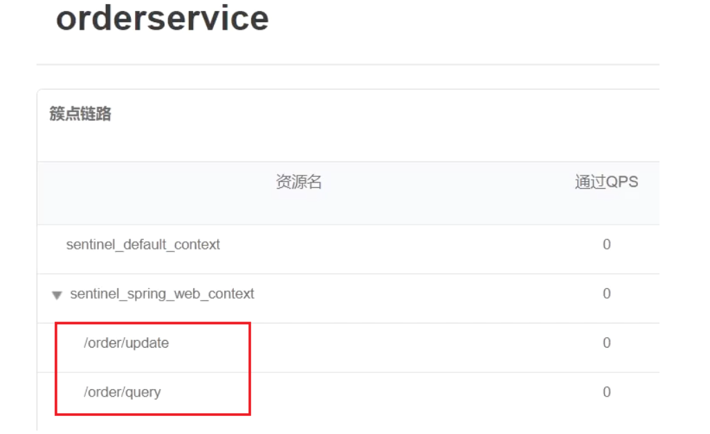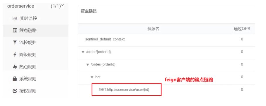 然后再访问sentinel的控制台,查看效果:如果没有的话就在8088那order下请求一下回来再刷新就有了