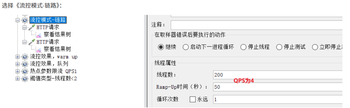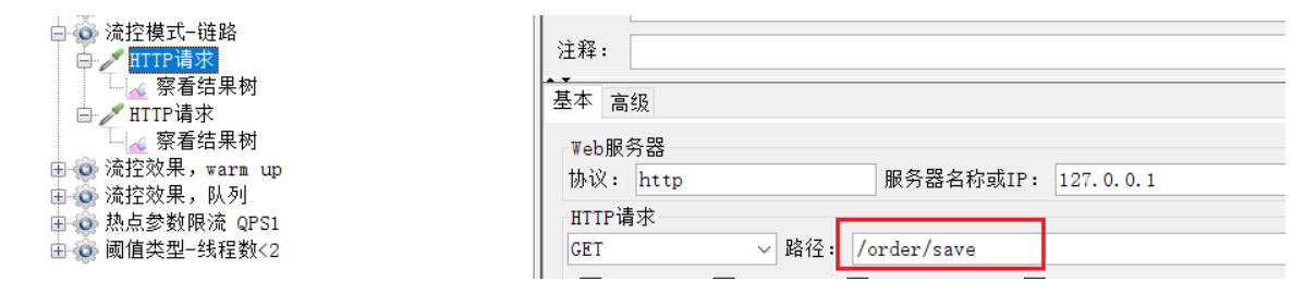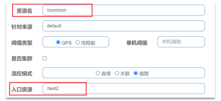链路:统计从指定链路访问到本资源的请求,触发阈值时,对指定链路限流