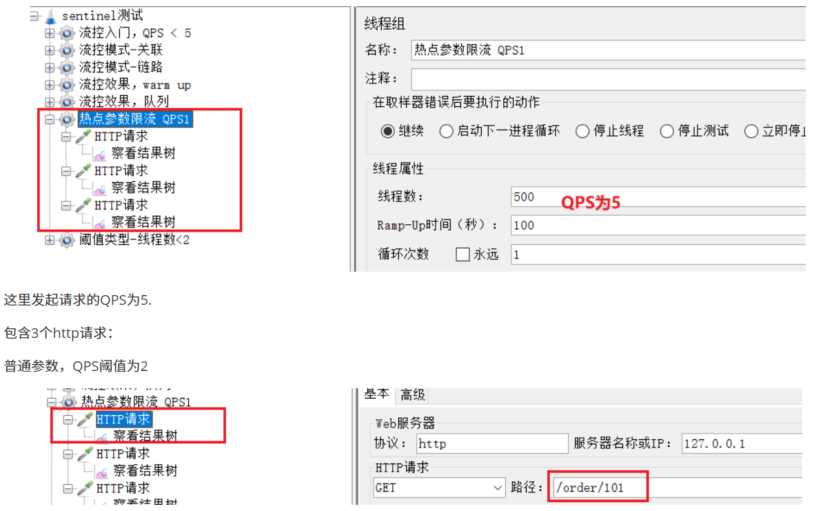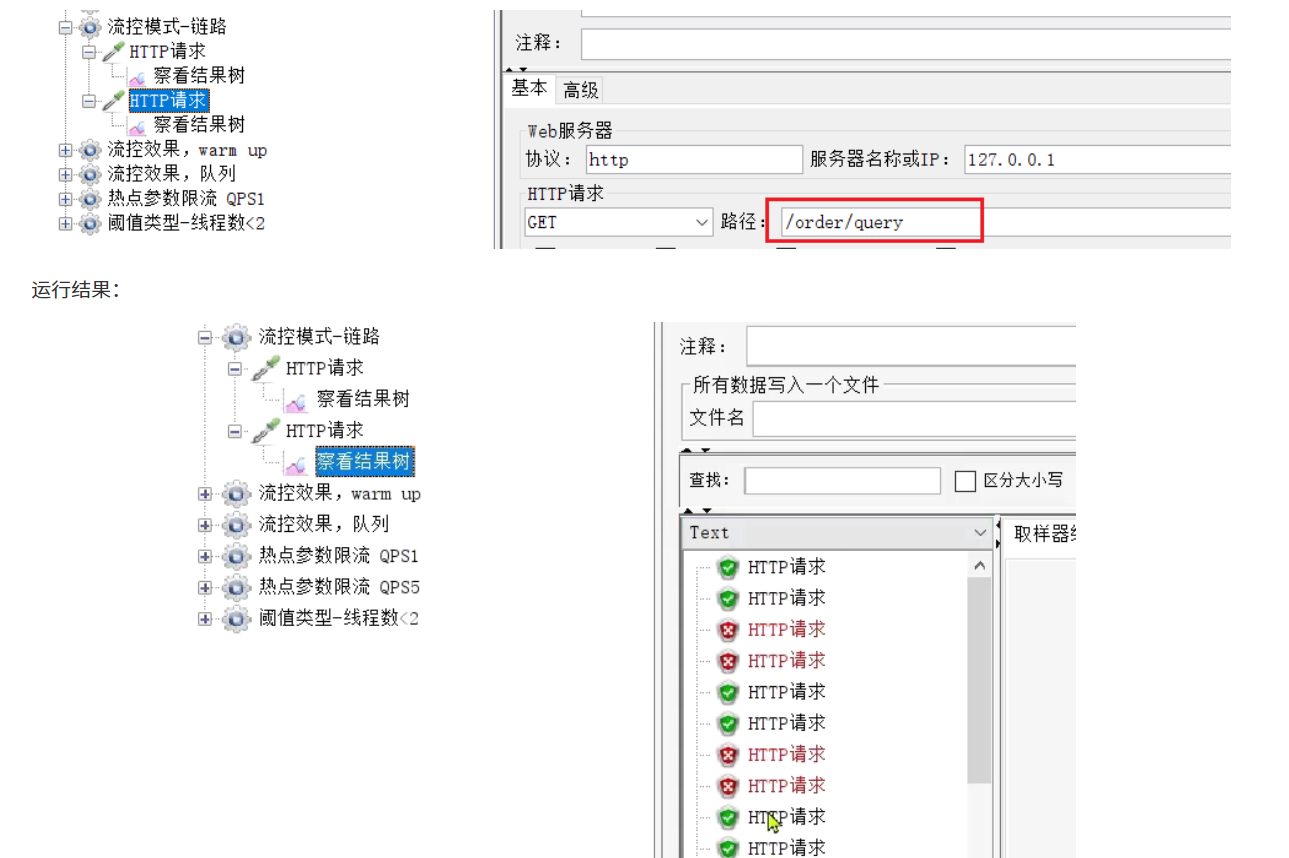 配置流控规则,当/order/ update资源被访问的QPS超过5时,对/order/query请求限流