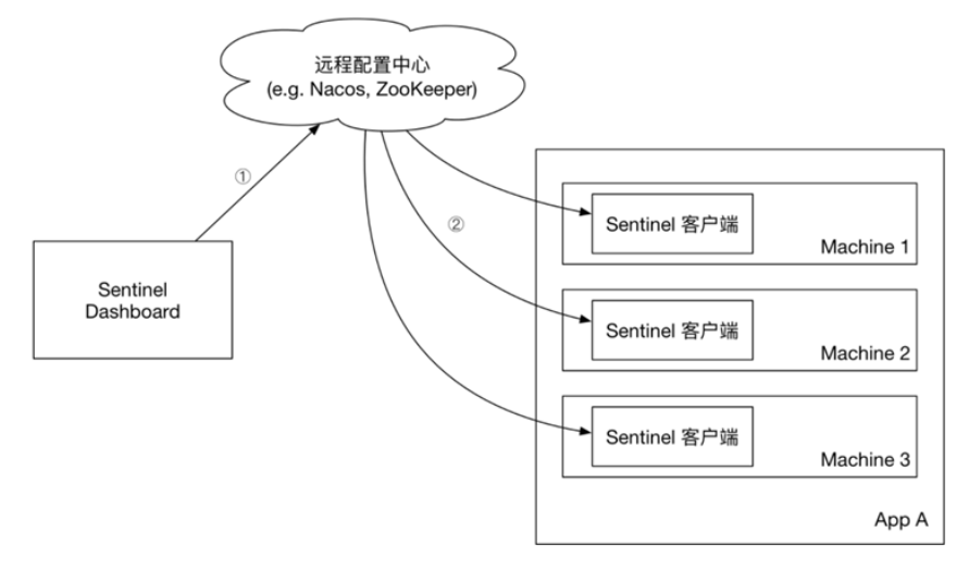 push模式:控制台将配置规则推送到远程配置中心,例如Nacos。Sentinel客户端监听Nacos,获取配置变更的推送消息,完成本地配置更新。